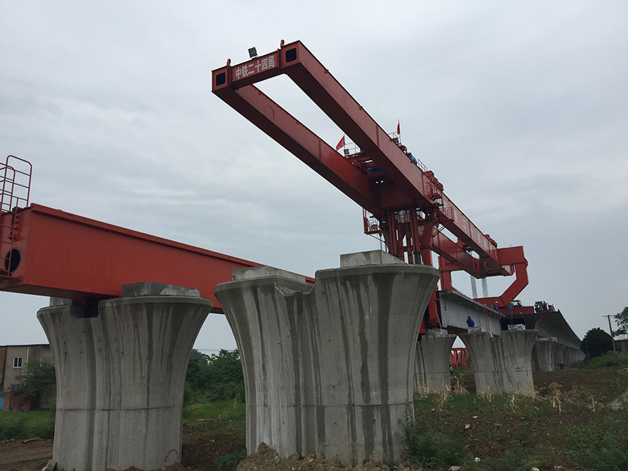 550T架橋機雙線變單線工況架梁